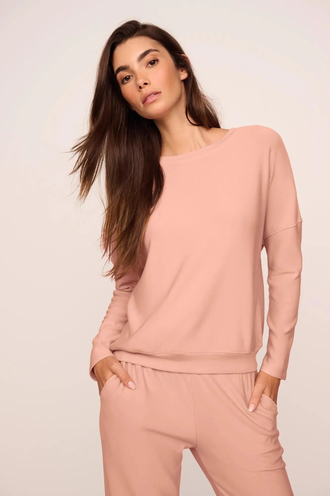 Like wrapping yourself in a cloud. Made from TENCEL™ Modal and a touch of Elastane for stretch and recovery, this super soft fabric is verified by OEKO-TEX® Standard 100, which means it was processed without harmful chemicals. This sweater weather essential features a drop shoulder, boat neck, inserted rib neckband and bottom band, dolman sleeves, and a relaxed, comfortable fit. Complete the look with the matching Softest Sweats Straight-Leg Pant or Jogger.